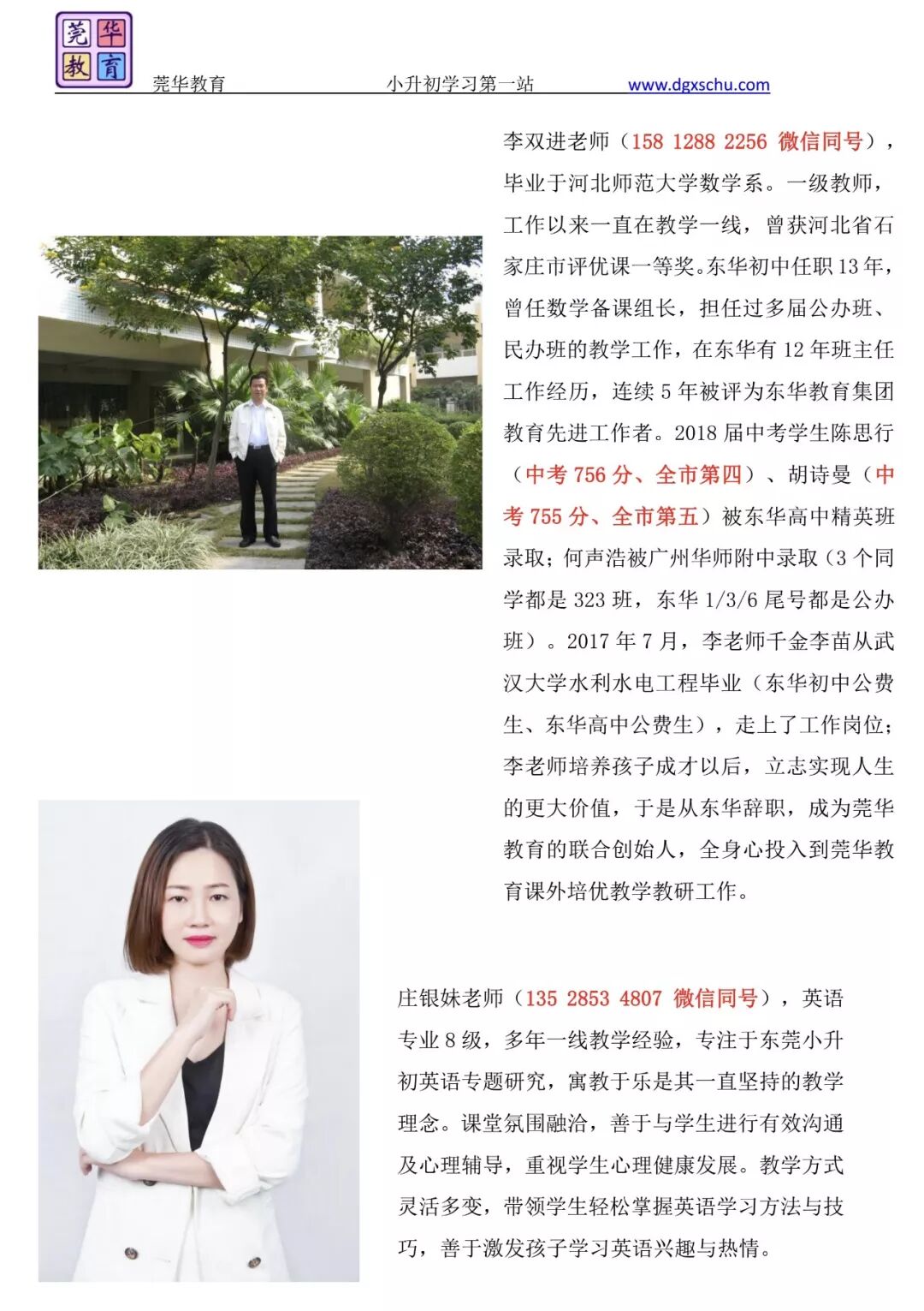 小陈老师(138-2721-2929 微信同号),东莞小升初面谈面试首席培训师,毕业于全国重点大学,东莞市初级中学数学老师、企业培训师、心理咨询师,专注于东莞小升初的思维能力培训、面谈面试强化训练、百科综合知识扩展延伸培训等,负责东莞小升初面谈面试培训报名工作,组织各目标名校的入读咨询指引,包括并不限于莞外、东华、光明、南开、翰林、虎外等名校。